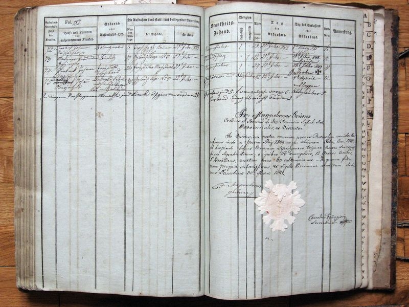 Księga chorych klasztoru Bonifratrów w Cieszynie z lat 1831-1842, również ze względu na przeciętny stan zachowania kart oraz złe zachowabie oprawy zakwalifikowany został do wykonania kompleksowej konserwacji.